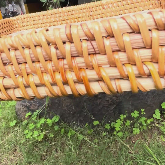 - Hand-woven rattan rim: Natural cane/wicker border adds warm texture and a raised lip to keep styled items steady and make carrying easier