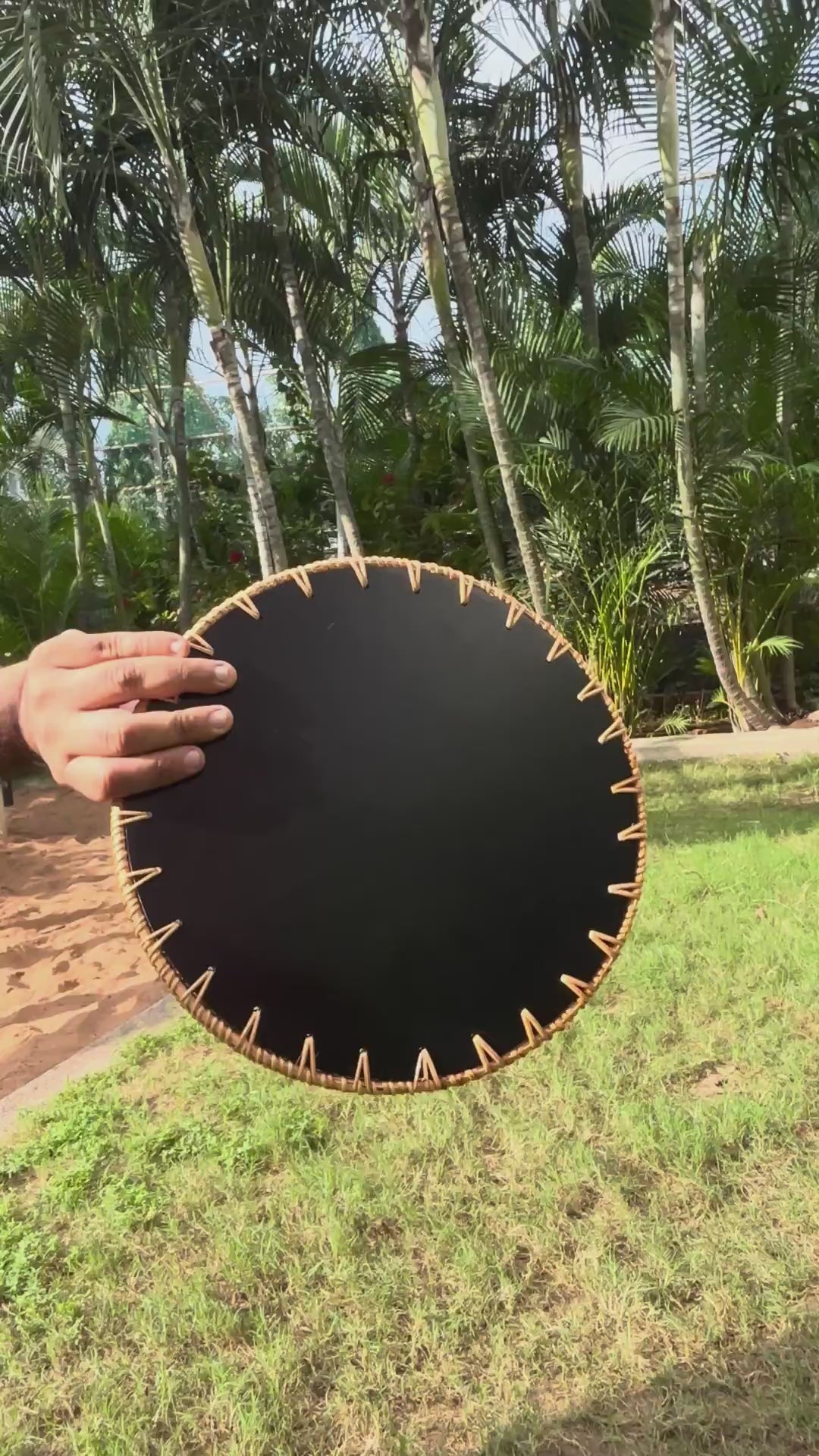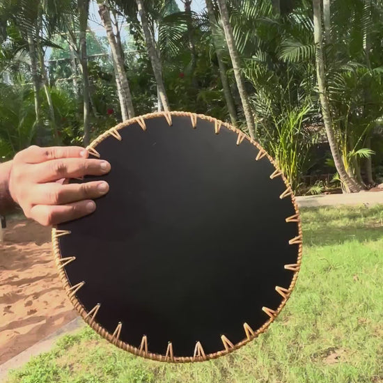 - Rattan rim, secure styling: Hand-woven cane/wicker border adds warmth and grip; subtle raised lip helps keep styled items in place
